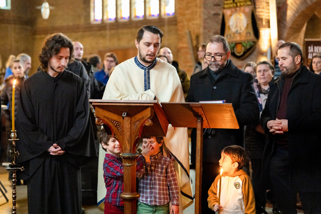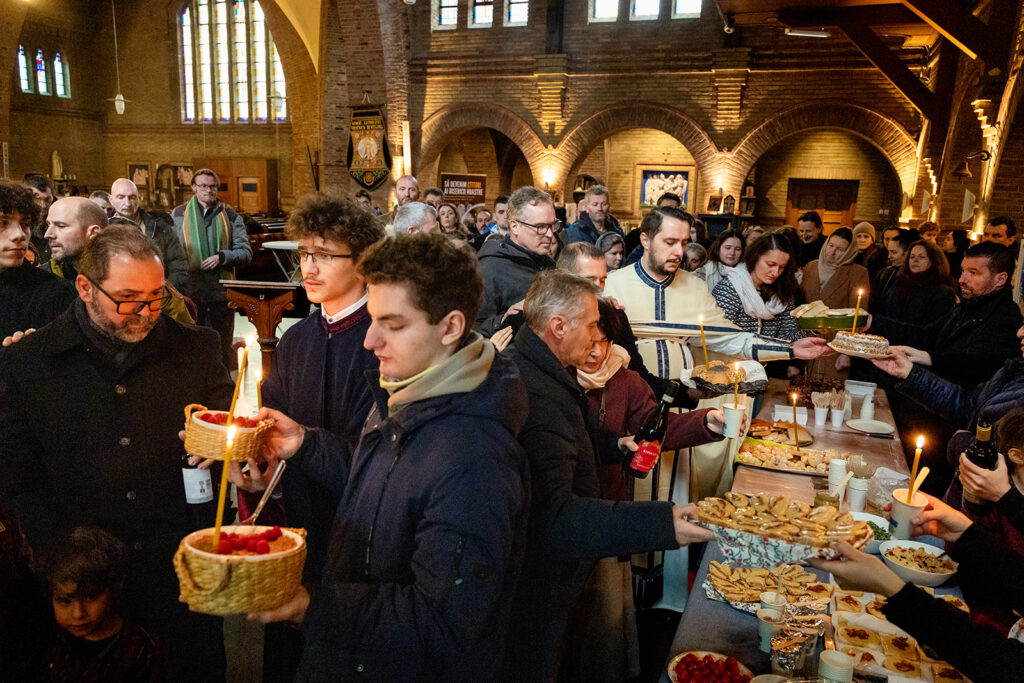 In totaal wonen er 70 duizend Roemenen in Nederland. Bijna 3,5 procent daarvan gaat volgens Iuga naar de Roemeens-orthodoxe kerken in Schiedam, in Megen (bij Oss), of in Heemstede. Van de vijfduizend Roemenen in de regio Noord-Holland komen er op zondag zo’n tweehonderd, tot tweehonderdvijftig gelovigen naar de mis. Voor Roemeens-orthodoxe begrippen is dat ‘weinig’, zegt Iuga, maar voor het katholieke Bisdom Haarlem-Amsterdam veel. Het bisdom verhuurt de monumentale, meer dan duizend vierkante meter grote kruiskerk – een ontwerp van Joseph Cuypers en diens zoon Pierre uit 1927 – sinds 2024 aan het Roemeens-orthodoxe bisdom. Die laatste heeft het eerste recht op aankoop, waarvoor sindsdien geld wordt ingezameld. Het zal nog even duren, verwacht Iuga, voordat de koopprijs van ongeveer acht ton door de gemeenschap bij elkaar is gebracht. Vooralsnog delen de Roemeense christenen de kerk met de katholieken, al maken die laatsten er niet meer vaak gebruik van.