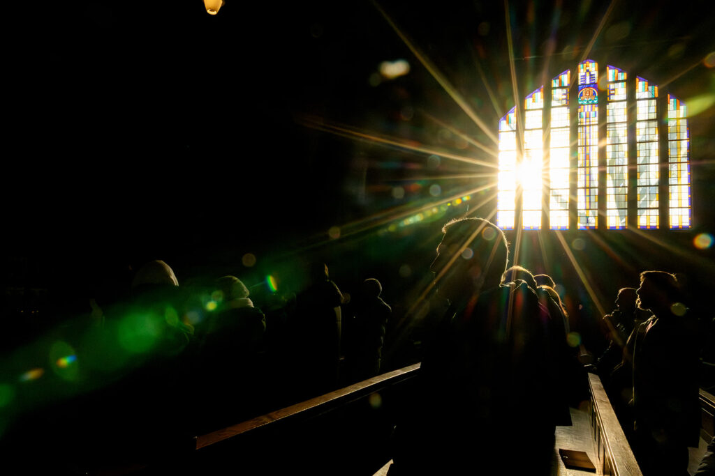 Vanaf half tien begint de Hemelvaartkerk vol te stromen. Er zijn kinderen, baby’s die huilen, een klein aantal gezinnen. De sfeer is informeel: er wordt niet vreemd opgekeken als mensen opstaan en weglopen. Achter in de kerk worden tafels vol etenswaren, wijn en limonade klaar gezet, voor na de dienst.
