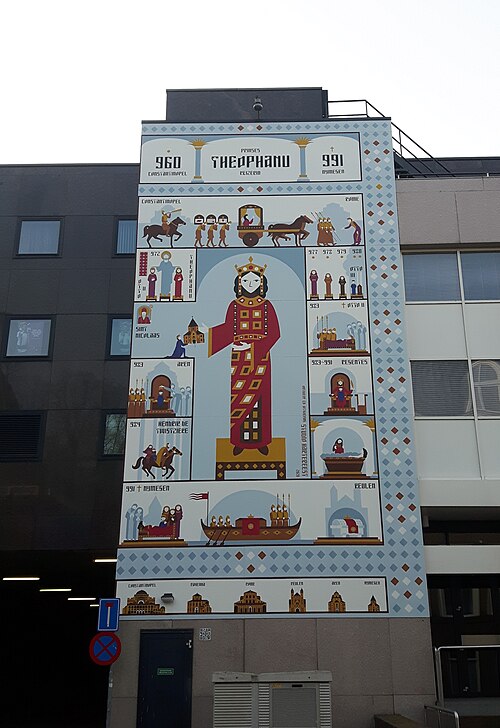 Theofanu (rond 960 – 991) was een Byzantijnse prinses, die in 972 op jonge leeftijd werd uitgehuwelijkt aan Otto de Tweede, keizer van het Heilige Roomse Rijk. Dat omvatte toen o.a. het huidige Nederland, België, Duitsland en Noord-Italië. Het was een politiek huwelijk, bedoeld om de relaties met Byzantium te verbeteren en het prestige van de Ottonen te vergroten. De huwelijksoorkonde is bewaard gebleven. Sommigen vonden dat Otto onder zijn stand was getrouwd. Want Theofanu was niet meer dan een nicht van de Byzantijnse keizer. Ze arriveerde met een groot gevolg in Ravenna en trok later met de hofhouding van haar man rond langs de kastelen en burchten van het rijk. In Nijmegen bevond zich één van die burchten. Het echtpaar kreeg vier kinderen. De drie dochters, Adelheim, Sofia en Mathilde zijn alle drie het klooster ingegaan en abdis geworden. De enige zoon en troonopvolger, Otto III, werd in de buurt van Nijmegen geboren, mogelijk in het bos bij Groesbeek. De Nikolaaskapel zou gebouwd kunnen zijn uit dankbaarheid voor deze geboorte, al zijn daar geen aanwijzingen voor. Na de dood van Otto II in 983 werd Theofanu keizerin en regentes van haar zoon. Ze regeerde vrij succesvol al vonden sommigen haar een arrogante buitenstaander uit Byzantium. Ze zou het gebruik van een vork bij het eten ingevoerd hebben. Dat was overbodige luxe.