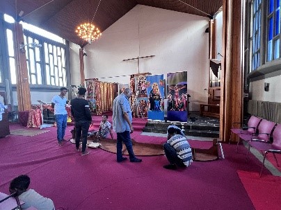 De Johanneskerk van links naar rechts: zondags wordt de kerk door de protestanten gebruikt (foto: Johanneskerk) en op vrijdagavond worden Het Heilige en Het Allerheiligste opgericht voor de Tewahdo dienst op zaterdagochtend.