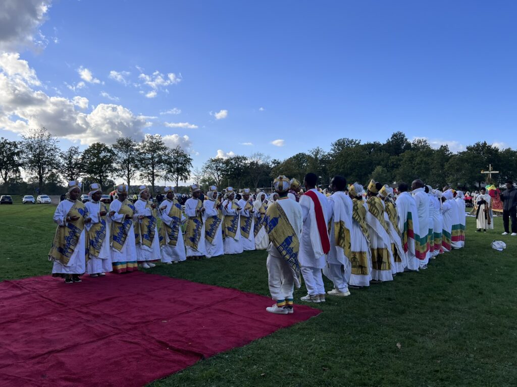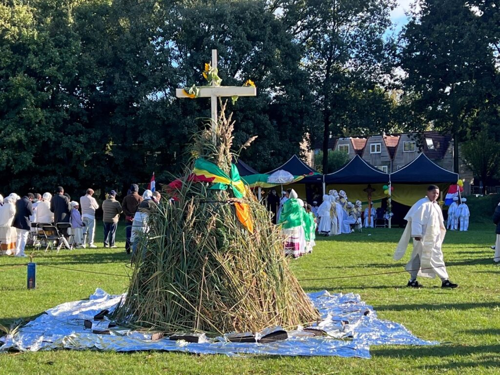 Op 28 september 2024 vieren de Tewahdo’s Meskel, op Park Schothorst-Zuid in Amersfoort (foto links). Het vreugdevuur wacht om aangestoken te worden door de bisschop of de priester.